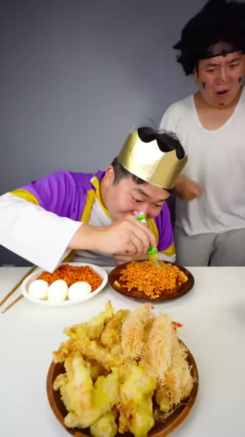 Buldak Carbonara Noodles with Crispy Fish and Chips #mukbang #먹방 #food #noodles #fish #seafood #mukbangeatingshow #funny