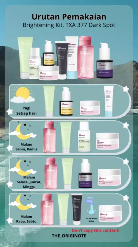 Urutan pemakaian brightening kit klo ditambah sama dark spot serum ✨ #theoriginote