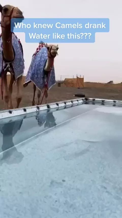 Eu pensei que os camelos lambiam a água como cães. kk _ _ 55) # greenscreenvideo # camels