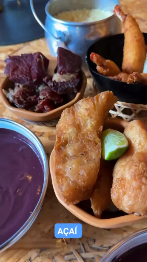 #CrescerNaFamília Açaí com camarão, charque e com peixe frito!!!