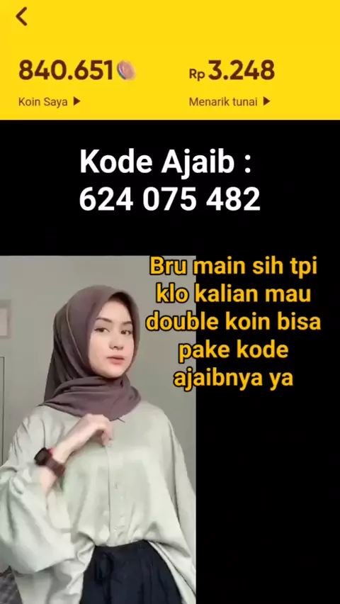 kalo ada yang mau double koin pake aja kode ajaibnya 624 075 482