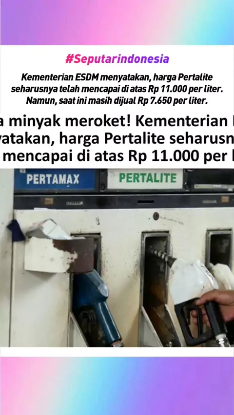 Added by @hariankopas Mengulas Hingga Tuntas post Harga minyak yang tinggi berdampak pada harga BBM. Namun, PT Pertamina (Persero) masih menjual Pertalite di bawah harga keekonomian. Kementerian ESDM menyatakan, harga Pertalite seharusnya telah mencapai di atas Rp 11.000 per liter. Namun, saat ini masih dijual Rp 7.650 per liter. "Pertalite ini kan sebenarnya jenis bahan bakar umum secara normal harga Pertalite ini sudah berada di atas Rp 11.000 harga keekonomian. Kemudian Pertamina masih t