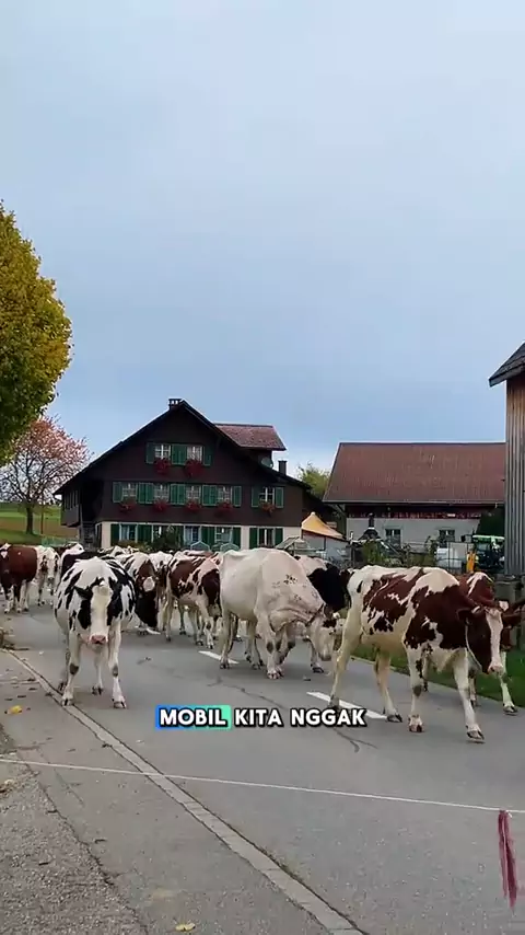 Pulangin sapi2 ke kandang karena salju sudah mulai turun. #switzerland🇨🇭 #withfresa #swissvillage