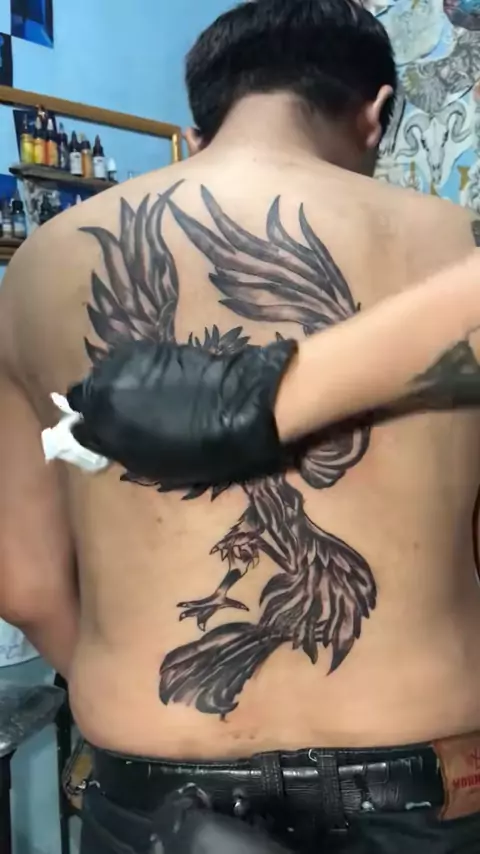 Tato burung phoenik di bagian punggung sesuai permintaan customer#tattooartist #tattoo #tommytattoart #tattooart #tattoolover
