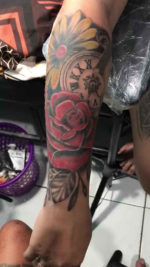 Tatto bunga mawar dan bunga matahari bagian lengan kanan luar#tattooartist#tattoideas#tattoo#tattoolover#tommytattoart