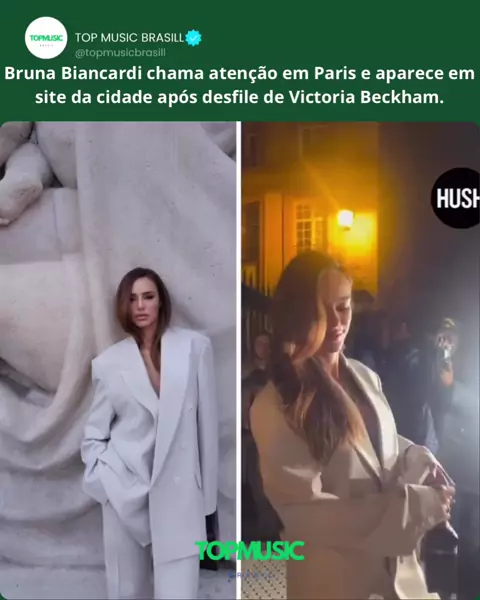 Bruna Biancardi ganhou destaque em sites franceses após marcar presença na saída do desfile de Victoria Beckham, na Semana de Moda de Paris. A influenciadora brasileira e parceira de Neymar Jr. atraiu olhares e foi apontada por portais locais como uma das presenças elegantes do evento. Seu look foi elogiado por transmitir sofisticação e combinar com o clima glamouroso da capital da moda. Fonte: @hush.officiel