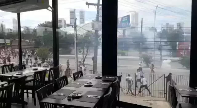 Filmagem de dentro do restaurante ainda sobre a confusão entre as torcido Santa Cruz e campinense