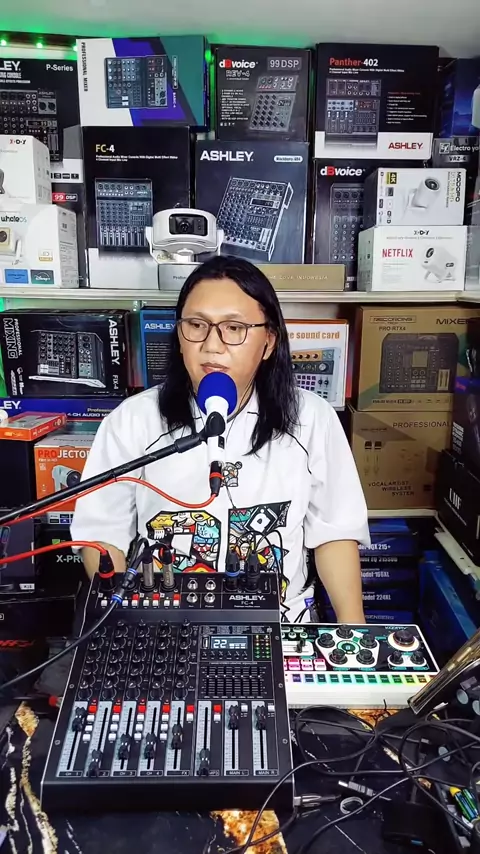 Mixer Ashley FC4 adalah mixer audio 4 channel mono yang dilengkapi dengan Bluetooth, pemutar MP3/USB, dan fitur recording (perekaman) ke flashdisk atau sebagai PC Soundcard. Fitur utamanya meliputi: EQ 4 band di setiap channel (termasuk Mid Sweept). 99 efek DSP (Digital Multi Effect Reverb 24bit). EQ Grafis Stereo 7 band di master output. +48V Phantom Power untuk mikrofon kondenser. Fader 70mm. Singkatnya, ini adalah mixer kecil yang kaya fitur untuk berbagai kebutuhan audio/karaoke/pere...