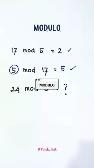 Modulo itu cara sederhana untuk mengetahui sisa hasil bagi. Misalnya 17 ÷ 5 = 3 sisa 2, maka 17 mod 5 = 2. Konsep ini sering dipakai dalam matematika, pemrograman, bahkan untuk pola bilangan. Dengan memahami modulo, kita jadi lebih mudah mengenali pola perulangan angka. #matematika #modulo #belajarmatematika #trikhitung #matematikaseru
