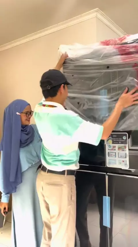 akhirnya unboxing kulkas, sepanjang video full senyumn😂🤣