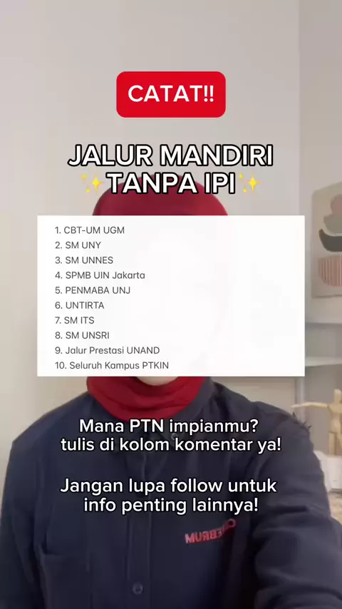 Jalur Mandiri Tanpa IPI #bimbelum #bimbelonline #pejuangptn #ujianmandiri #ptn #bimbelsnbt #bimbelutbk #snbt2025 #soalutbk