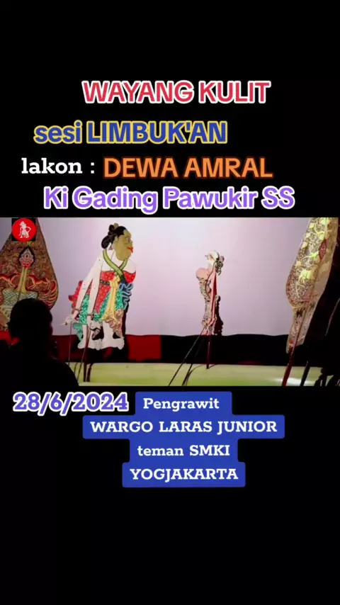 LIMBUKAN. KI GADING PAWUKIR SS. WAYANG KULIT, LAKON DEWA AMRAL. Di iringi pengrawit WARGO LARAS JUNIOR, teman SMKI YOGJAKARTA. cover DALANG SENO. salam budaya. #limbukan #kigadingpawukirss #wayangkulit #putradikari #cover #ricord #dewaamral #wargolarasyunior #dalangseno #fup #vidioviral #budayanusantara #budayajawa #viral
