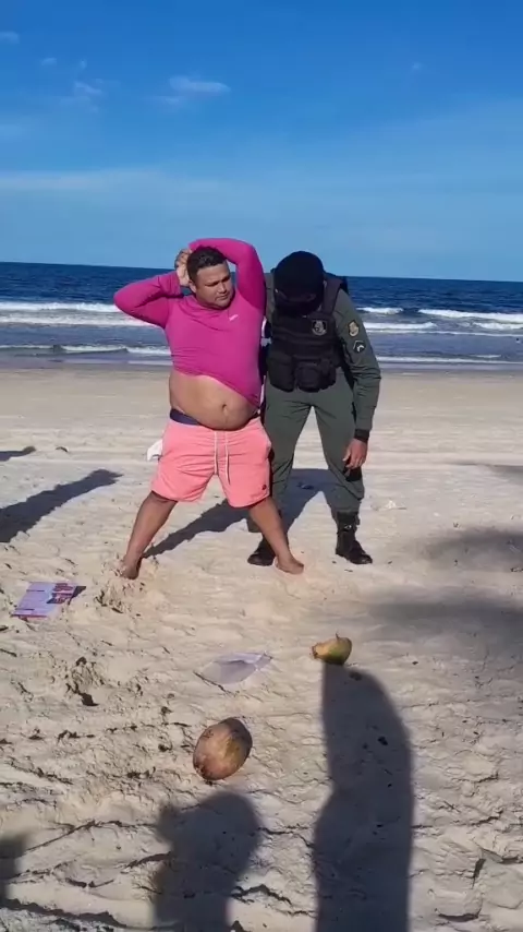 policiais militares na Praia do Futuro barraca Chico do Caranguejo fazem abordagem correta e o policial militar R Bruno ameaça eu que estou gravando a abordagem...
