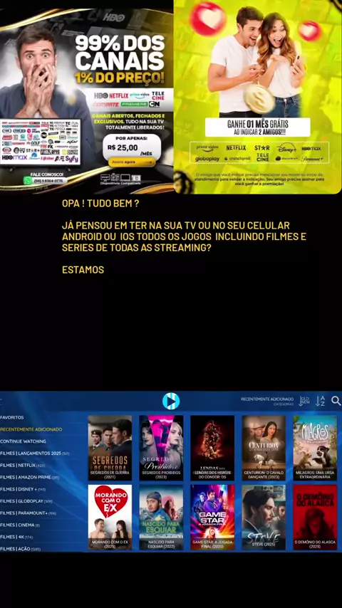 Opa ! Tudo bem ? Já pensou em ter na sua tv ou no seu celular Android ou ios todos os jogos incluindo filmes e series de todas as streaming? Estamos liberando 7hrs grátis para você aproveitar o nosso aplicativo, se você tiver interesse é só responder esse vídeo com a seguinte palavra ➡️ [EU QUERO] QUE VOU TE DA ACESSO AO APLICATIVO ⬇️ https://xciptv.br.uptodown.com/android A TVGLOBALLFULLHD agradece pela sua atenção!! Até a próxima!!