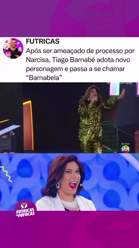 Amado personagem de Tiago Barnabé passa a ser anunciado como Barnabela e não mais Narcisa. O que acharam? Siga @futricasefofocas para ver mais ☕️ (Vídeo/Reprodução: @/sbt)