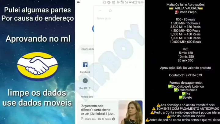 #Ccfull #aprovacao #infocc #cartaocronado #cartaodecredito Mafia Cc full e Aprovações 💳TABELA VALORES💳 🚨Limite Preço 800= 80 reais 1,500 Mil= 150 Reais 3,500 Mil = 350 Reais 4,500 Mil= 400 Reais 5,000 Mil = 450 Reais 7,000 Mil = 500 Reais 10,000 Mil= 600 Reais Mix: 5 mix 150 10 mix 250 20 mix 350 Aprovação 40% Do valor do produto Contato:21 973167579 Formas de pagamento: ✅Depósito pela Lotérica ✅Transferência ✅Pix ✅Boleto