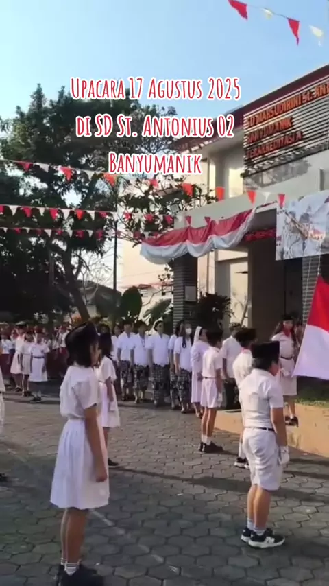 Bersyukur upacara 17 Agustus 2025 di SD St. Antonius 02 berjalan lancar. Upacara diikuti semua warga Sekolah, dan Rm Djati juga bergabung. Sebagai pembina upacara Ibu Yasinta Kepsek. Pr petugas pengibar Bendera, koor, dll anak2 klas VI. Semoga kami semua sbg warga Negara, Gereja 100 %.#UmatMU#anak#guru#Romo#Suster