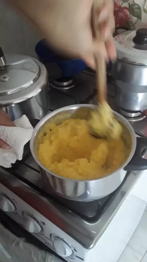 preparando um angu de milho feito com flocao