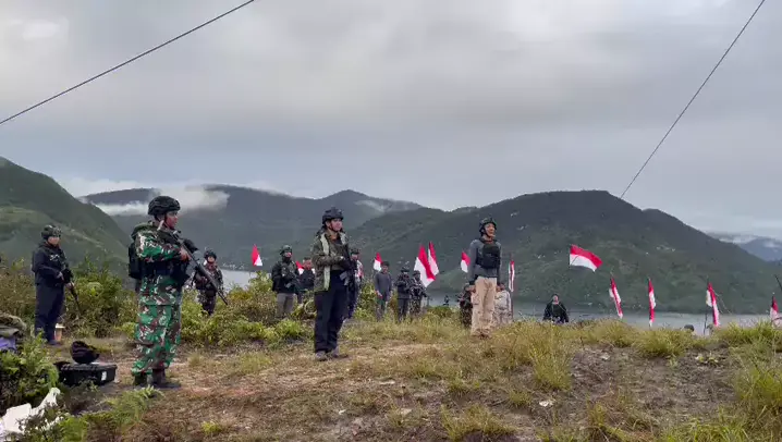 pengibaran bendera di pedalaman papua