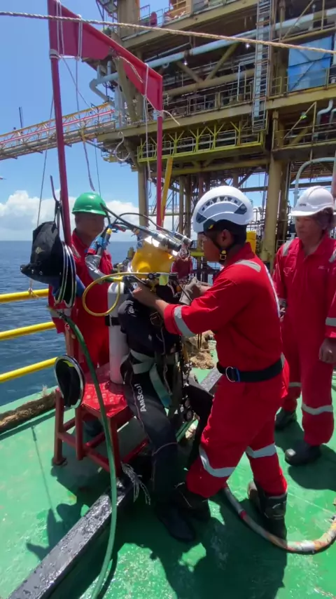 Marine growth removal Diver one Aryagian,standby diver mr paul roberts.pertamina hulu kalimantan timur #commercialdiving #tukanglasbawahair #tambangminyak #pertaminaindonesia #pertaminaindonesia #pelautindonesia #offshorelife #welder #weldingunderwater #commercialdivingschool #musicviral