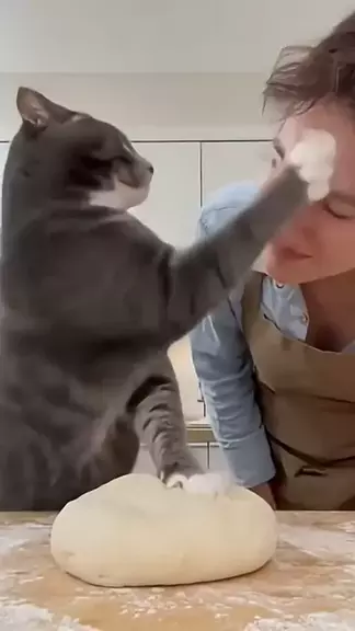 The cat: Get out of the way, you're going to get fur in the dough 🤣🤣 #funnycat #funnycats