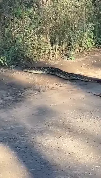 Uma cobra Jib贸ia gigante no meio da estrada. #snake