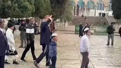 Masih pagi waktu #BaitulMaqdis, tapi rombongan pemukim haram dipimpin ekstrimis Yehuda Ghlik & dikawal pasukan Zionis bersenjata sudah menyerbu masuk #MasjidilAqsha - mengejek dan memprovokasi. 20 Ramadhan 1444 #CNFfamily #palestina๐ช๐ญโคindonesia๐ฎ๐ฉ #ุฑู