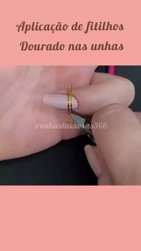 Aplicação de fitilhos dourado nas unhas, #Unhas #nail