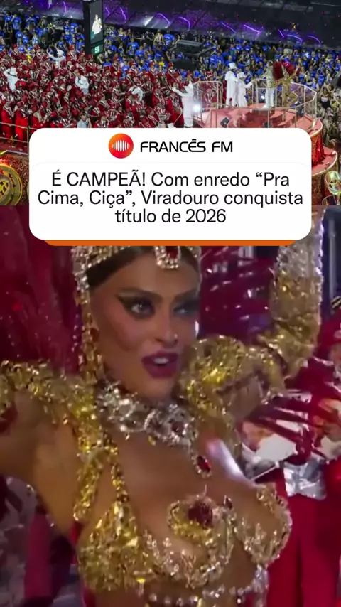 A Unidos do Viradouro conquistou o título de campeã do Carnaval do Rio de Janeiro em 2026. A escola emocionou o público ao apresentar, na Marquês de Sapucaí, o enredo “Pra Cima, Ciça”, uma homenagem ao mestre de bateria Ciça, que soma 15 anos de trajetória na agremiação e quase quatro décadas dedicadas ao posto. #viradouro #carnaval