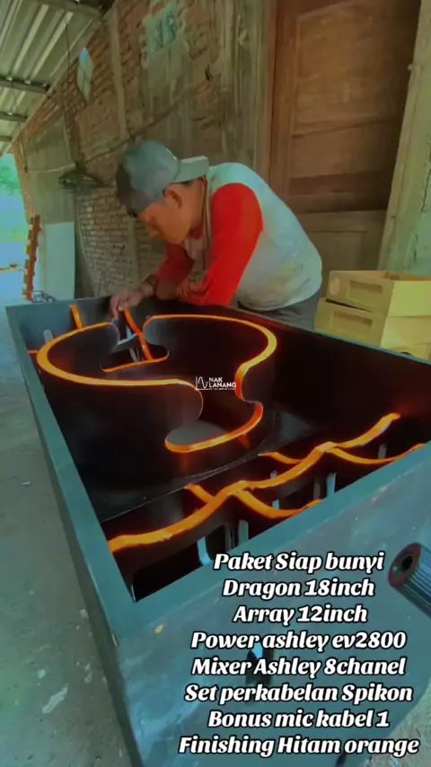 Paket Siap bunyi Dragon 18inch Array 12inch Power ashley ev2800 Mixer Ashley 8chanel Set perkabelan Spikon Bonus mic kabel 1 Finishing Hitam orange