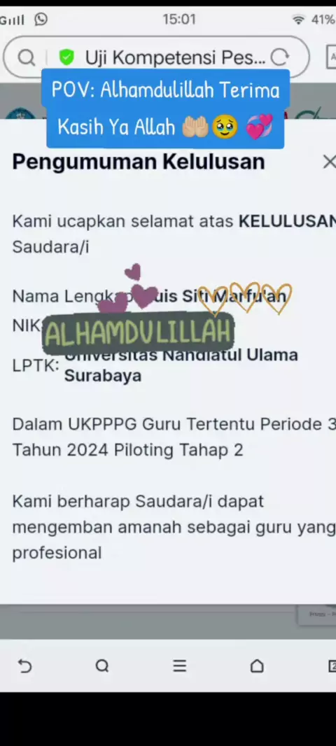 #Alhamduiah #pengumumankelulusan PPG Daljab Piloting tahap 2 #bersyukurシ