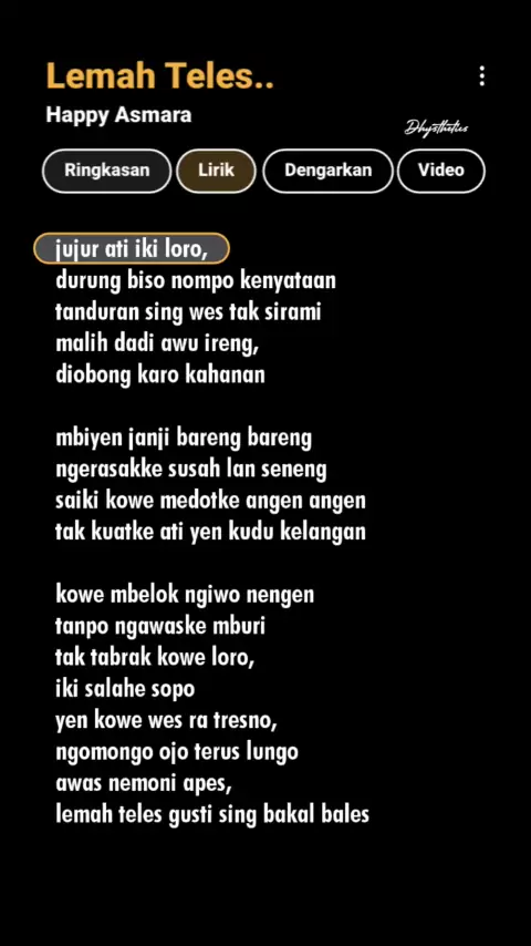 Ampun supe Gusti mboten sare ... #nyanyibareng #liriklagu #lemahteles #happyasmara #mentahanlirik #dhysthetics