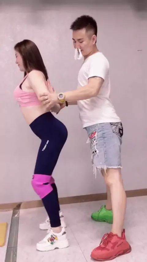 Membantu siswa perempuan melakukan gerakan peregangan sebelum belajar, mimisan sedikit di luar kendali # kebugaran kecantikan # kecantikan # dewi
