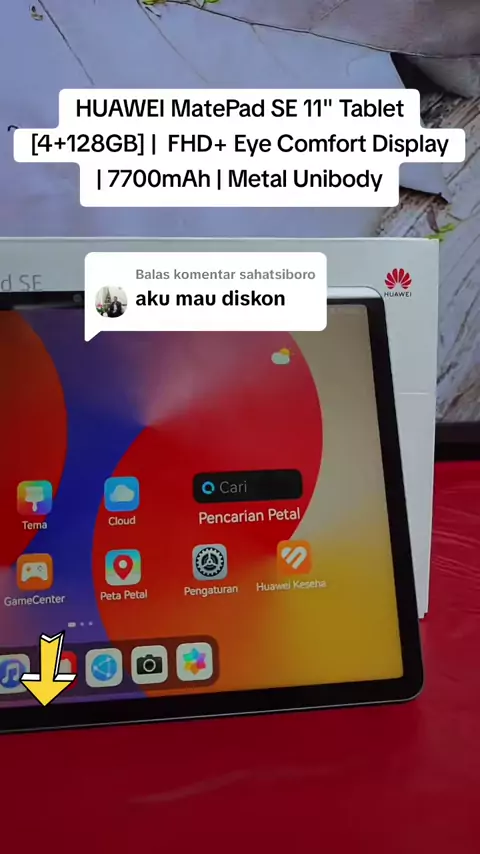 Membalas @sahatsiboro HUAWEI MatePad SE 11" Tablet [4+128GB] | FHD+ Eye Comfort Display | 7700mAh | Metal Unibody#tablet#huawei#tablethuawei#huaweimatepad#huaweimatepadse11