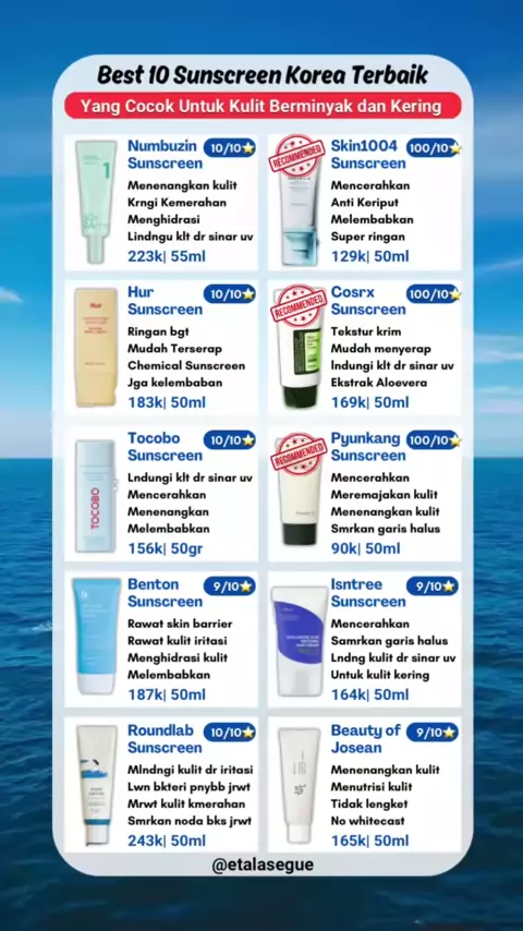 #ad Rekomendasi Sunscreen Korea #skincarekorea #koreaskincare #sunscreen #sunscreenkorea #cosrx #skin1004 #pyungkangyul #isntreesunscreen #roundlabsunscreen #numbuzin # #etalasegue