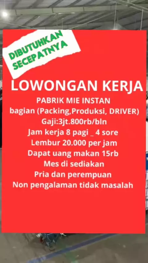 Loker Pabrik Mie instan Info Pendaftaran silahkan klik link di bio#lokertampaijazah#lokerterbaru#loker2024#dong#lowongankerja#loker##infoloker#lokerterbaru2024#pabrikmie#mieinstan