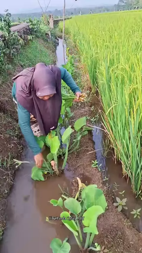 panen sayur genjer langsung dimasak dan dimakan dipondok sawah dengan pemandangan padi yang mulai menguning.##kampunghalaman#kontenpedesaan#pedesaan#masakdikebun
