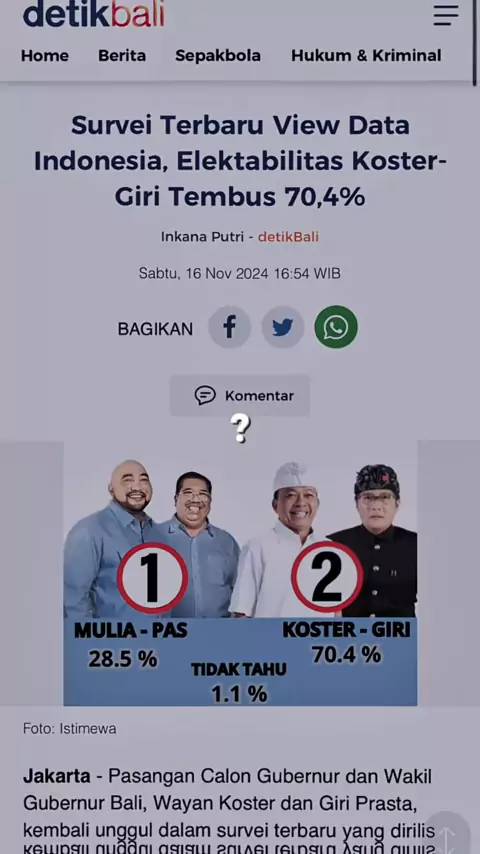 Survei Koster-Giri unggul 70,4% dari paslon 01 Mulia-PAS # #kostergiri #wayankoster #Menyalawii #balierabaru #coblosnomor2 #2untukbali #pelit