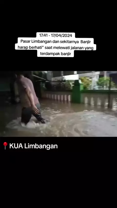 17.41 - Kondisi terkini, Banjir area Pasar Limbangan, Kantor KUA Limbangan dan Sekitarnya . harap berhati-hati saat melewati daerah terdampak Banjir . , ketawa dalam video bukan ngetawain mas" yang jatuh ya, tapi mbaknya minta cepet sambil ketawa karena kebelet pipis π . sc.wag #kendal #explorekendal #bencana #limbangan #banjir #banjirlimbangan #