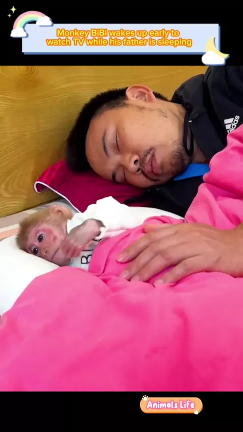 Macaco Bibi acorda cedo para assistir TV enquanto seu pai está dormindo # monkey # monkeybibi # animals # animal # pet # monkeys # pets