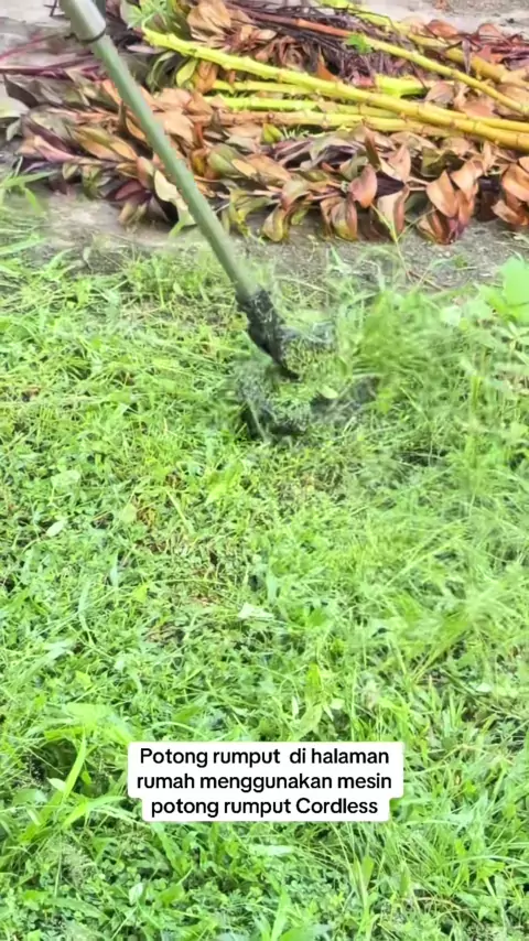 Potong rumput di halaman rumah menggunakan mesin potong rumput Cordless#Tanzu#cordlesstools