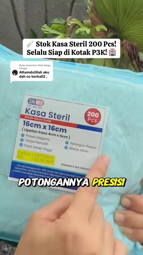 Membalas @Hilda Moga Siregar 🩹 Stok Kasa Steril 200 Pcs! Selalu Siap di Kotak P3K! 🏥 Jaga selalu kesiapan di rumah atau klinik Anda! GUNAMED KASA STERIL hadir dalam kemasan isi 200 lembar yang super hemat. ✅ Kasa diproses secara steril dan dikemas satuan, memastikan kebersihan optimal saat digunakan untuk menutup dan membersihkan luka. Persediaan yang wajib ada untuk kebutuhan darurat sehari-hari. Stok aman, luka cepat tertangani. Check out Kasa Steril Gunamed sekarang!#KasaSteril#AlatKesehat...