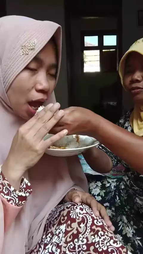 maem disuapin ibu yang juga buta #sarapan #pasangan tunanetra #tunanetra Indonesia