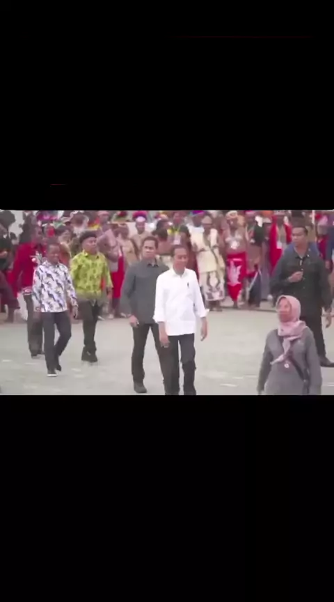 Moment Presidn Jokowi saat turun Panggung untk mnyaksikan Atraksi Pnerjun Payung n Kapal yg Melintas d Acr Sail Teluk Cendrawasih, Kmis 23 Nov 2023 ๐ฎ๐ฉ