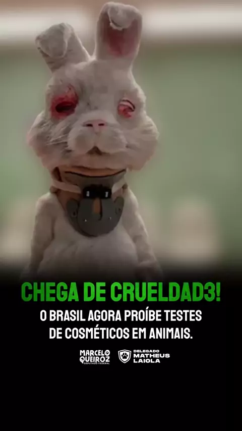 VITÓRIA HISTÓRICA PARA A CAUSA ANIMAL! Agora é LEI: está proibido testar cosméticos em animais no Brasil. Foram anos de luta até chegarmos aqui. Um passo enorme rumo a um país mais justo, onde a vida animal é respeitada como deve ser. Estamos entre os poucos países do mundo que tiveram coragem de dizer: basta de cru3ldade! Seguimos firmes, porque a luta pela proteção animal não tira férias. Você é contra qualquer tipo de crueldad3 com animais? COMPARTILHE!
