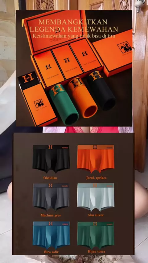 HEPNIES kemasan kotak kardus celana boxer pria mewah berbahan sutra, trendi, menyerap keringat, dan sejuk, boxer pria berkualitas tinggi gaya Korea