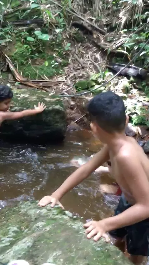 Continuação do outro vídeo kkkk meu filho tomando banho de cachoeira