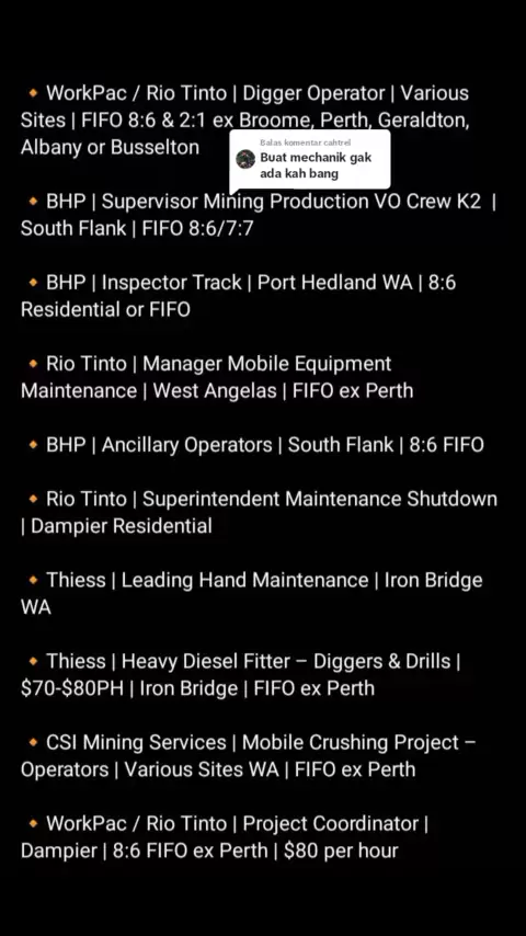 Membalas @cahtrel#fifo#jobs#mining#miningaustralia#anaktambang#posttambang#tambanghitz#lokertambang#storytambang#gapernahmasuk