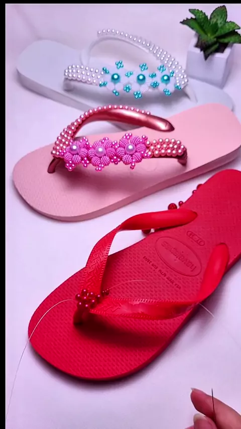 Quer aprender passo a passo?Vem comigo! Chinelo bordado com pérolas #artesanato #diy