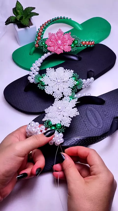 sandália personalizada com pérolas #artesanato #DIY
